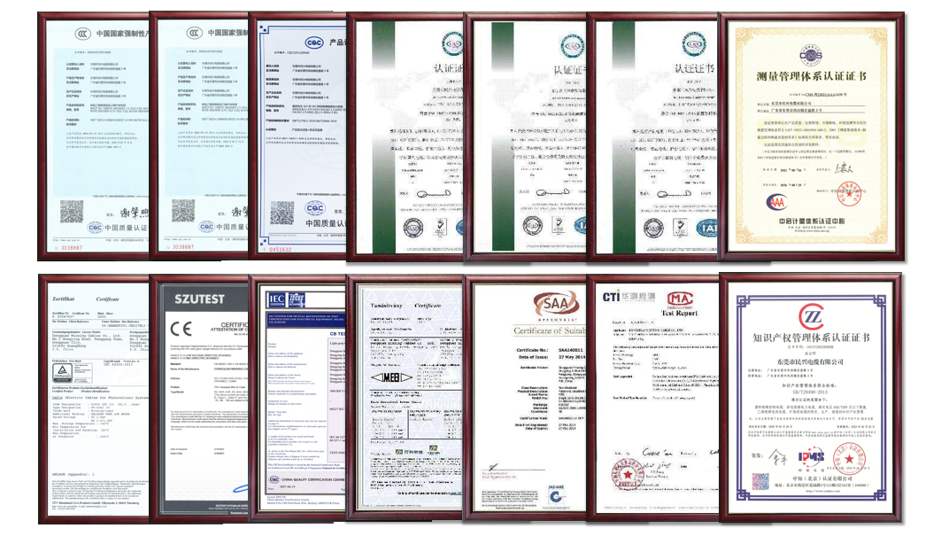 金世豪坚持自主研发,重视质量管理和售后服务体系建设,经过多年的努力和不断改进,建立了一套科学规范、资质认证齐全的质量管控体系和售后服务系统,为打造高品质线缆奠定坚实基础。拥有:ISO质量管理体系认证、国家CCC认证、中国质量认证中心CQC认证、国际IEC认证、欧盟CE认证、澳大利亚SAA认证、德国莱茵TUV认证、欧盟RoHS环保检测认证等;建立严格完善的来料检测系统,严苛甄选原材料,从源头上保证产品的高端品质;启用QMS质量管理系统、全自动化机械手臂等,实现智能化、精细化、标准化生产,提高生产制造质量水平。