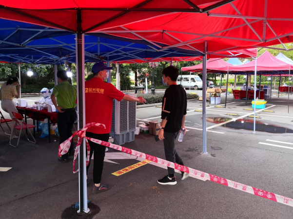 事实上,志愿者阿川的经历只是金世豪鼎力支援宏盈工业园区全民核酸检测大筛查行动的一个缩影。同心抗疫,爱心接力,连日来,金世豪党员、团干、志愿者们闻讯而动,踊跃参与到疫情防控工作之中,采取执勤轮换的方式全力保障入口扫码信息登记、健康码核验、体温检测、流程引导、信息录入、核酸采样等各个环节正常运行,为抗疫一线工作人员构筑起坚实“后盾”,解决他们的后顾之忧。